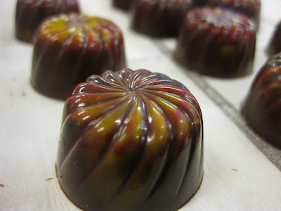 We worked on an assortment of bonbons. I actually enjoyed making the individual chocolates a little more than the chocolate sculpture, since they're on a smaller scale and therefore a lot more manageable. Though its a pain in the butt to constantly make sure your chocolate is at the right temperature, molding and dipping the chocolates was quite easy.